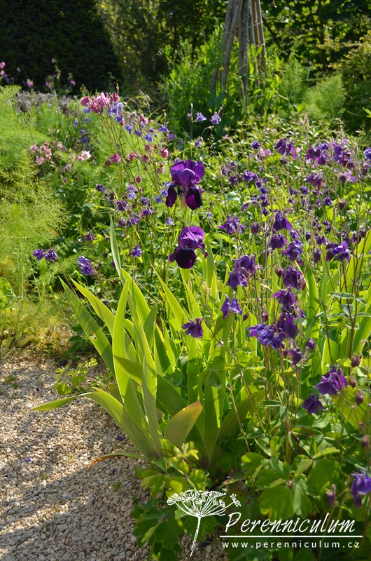 Vstup do ovocného sadu a květnaté louky střeží majestátní ořech, tedy ne pes, ale strom, Juglans regia. Květnatou loukou, kde právě kvetlo mnoho miříkovitých rostlin, bílé i modré ladoníky (Camassia leichtlinii) a třeba i žluté pryskyřníky se dojde až ke dvěma jezírkům s přírodními, podrostovými výsadbami. Odtud už je to kousek zpátky k reprezentativní části zahrady.