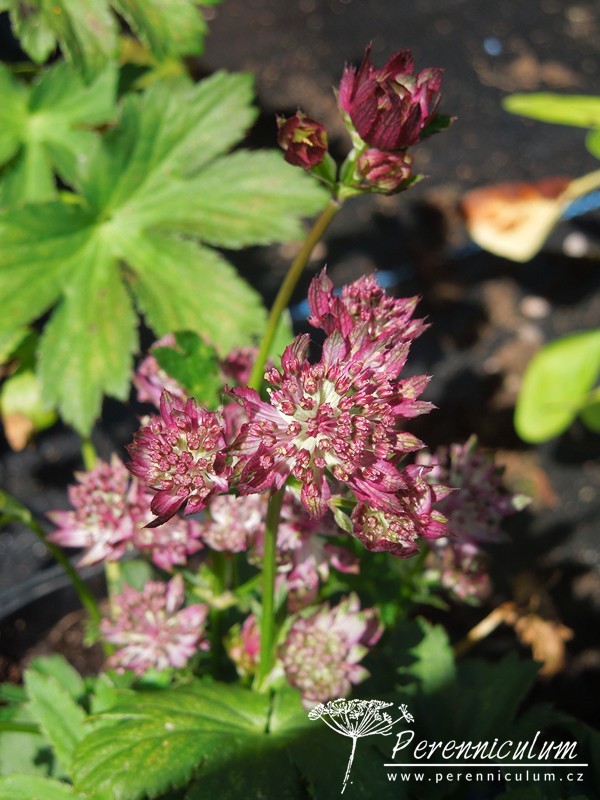 Květy Astrantia major jsou ve skutečnosti květenstvími - tzv. okolíky (čeleď miříkovité), které jsou zvýrazněny nápadnými listeny (tzv. brakteoly).