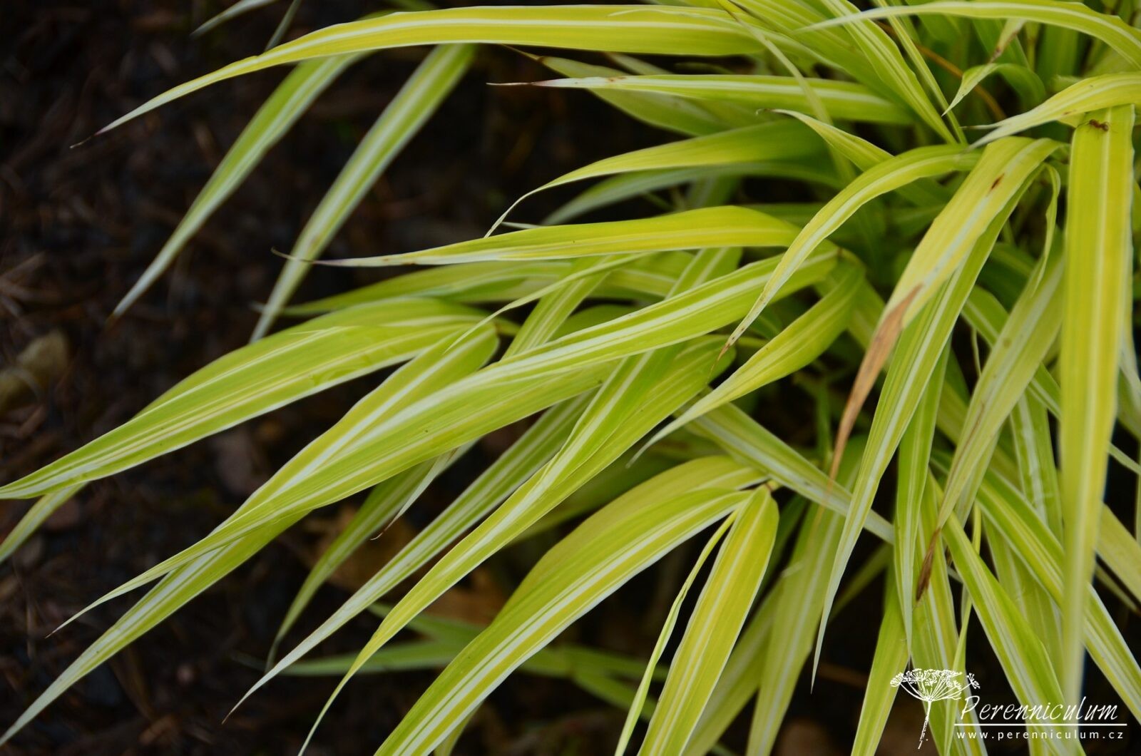 Hakonechloa macra je endemitem jihovýchodní části ostrova Honshu v Japonsku, kde roste ve vlhkých štěrbinách a spárách skal. Obloukovitě převisající, úzké, dlouhé listy vytváří úhledný, hustý, kopečkovitý trs, jehož průměr může v dospělosti dosáhnout až 60 cm. Dlouze řapíkaté, jasně zelené, necelý centimetr široké listy se na podzim barví do bronzovočervena. Od srpna nesou dlouhé, tenké, obloukovitě přepadající stonky nenápadné, rozvolněné klásky béžové až mahagonové barvy.