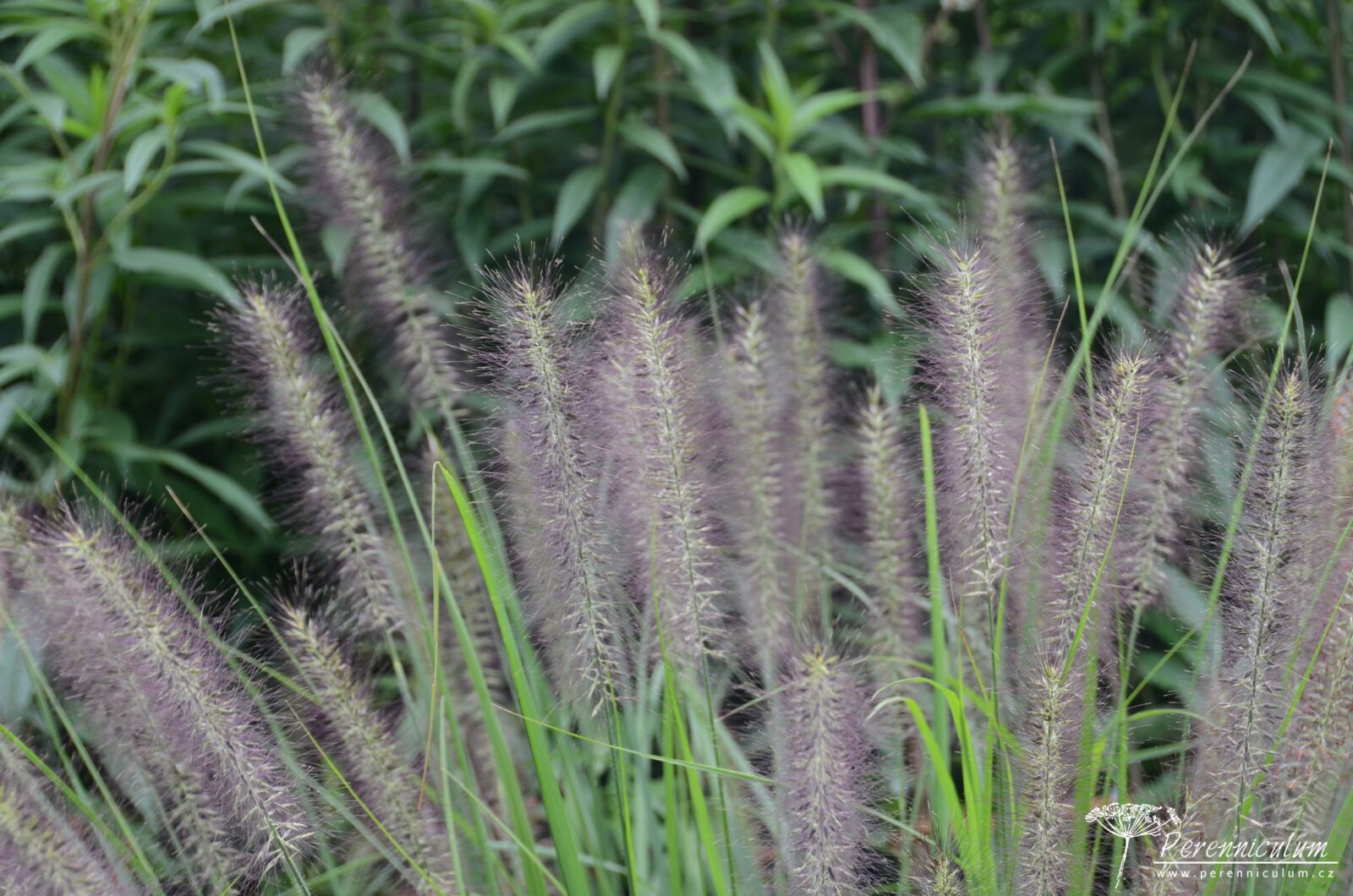 Pennisetum alopecuroides přirozeně roste na slunných stráních, loukách a úhorech v Japonsku a východní Asii od Korei po Filipíny. V domovině dosahují rozkladité trsy obloukovitě se sklánějících listů výšky až 1 metr, zahradní kultivary bývají zpravidla menšího vzrůstu. Úzké (zhruba 1 cm), dlouhé, leskle tmavě zelené listy se zdrsnělým okrajem se na podzim barví do oranžových až červených tónů a přes zimu zůstávají pískově béžové. Od srpna a září vyrůstají mezi listy či těsně nad nimi dlouze osinaté, válcovité lichoklasy, které připomínají štětku na čištění láhví. Raší poměrně pozdě, až ve druhé polovině května.